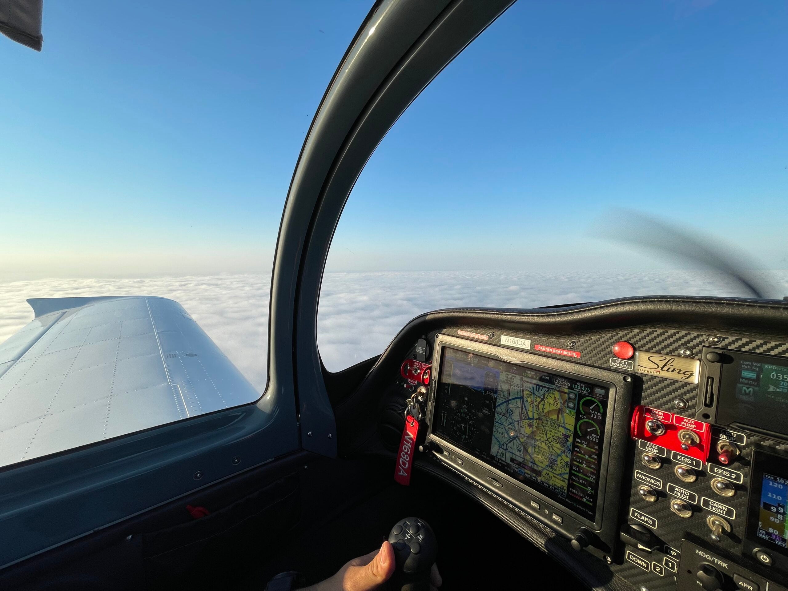Sling飞机配备了全套Garmin玻璃座舱,包括主飞行显示器(PFD)、多功能显示器(MFD)、集成式发动机监控、GPS导航、ADS-B交通和气象信息功能以及自动驾驶仪集成。所有关键的飞行、导航和性能数据都显示在与先进仪表飞行规则(IFR)飞机类似的现代化统一界面中。